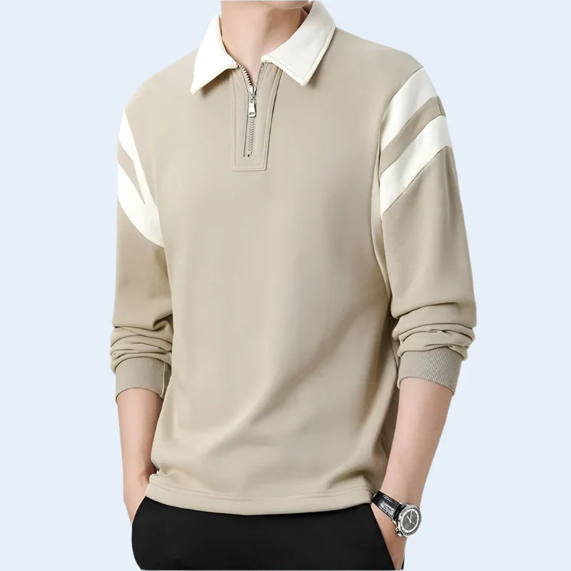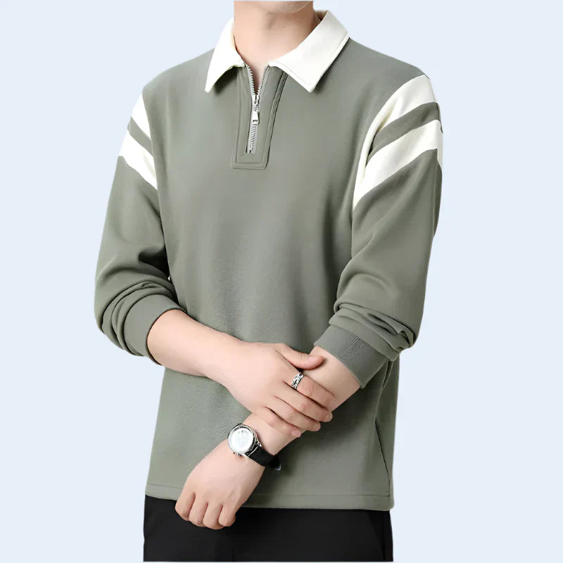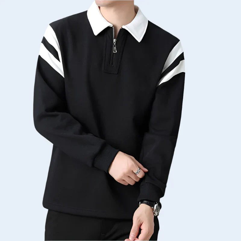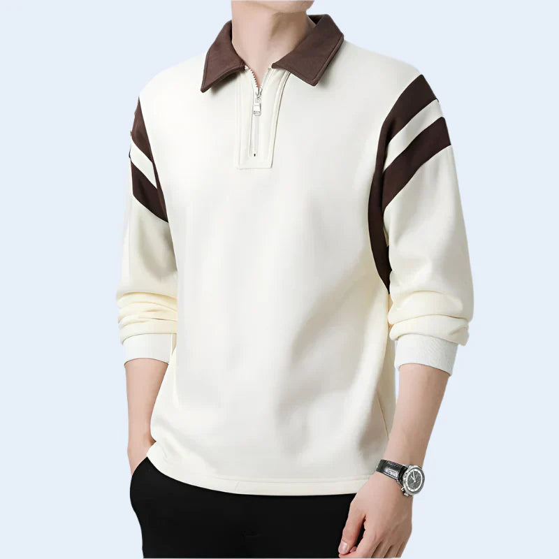 Le col contrasté et l'encolure semi-zippée ajoutent à la polyvalence de ce vêtement, qui convient aussi bien aux week-ends décontractés qu'aux sorties actives.